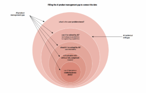 Top tier tech companies have had to pause or scrap some of their signature AI undertakings. Particularly for the tech giants, a lack of data and engineering talent does not account for why some AI products fell through initially, or were even ultimately abandoned. It is time, I have argued, to shift focus from the AI gap in technical skills and capabilities to the AI product management gap. In the triangle of business, tech and user experience, the product profession is best placed to ensure user experience is not only considered, but comes first. In AI product management, user experience encompasses more than is visible to the users’ immediate perception. Model-fuelled products are moving targets, both influencing and influenced by users. The ‘human factor’ is much more far-reaching compared to products based on software engineering alone: be it understanding the individual psychological and socio-cultural user considerations influencing whether AI-products get adopted or fail, the ability to assess if AI is truly needed to solve a user problem and which manifestation of it is most suitable and economically viable, or having a grasp of how data protection, legal and ethical requirements translate into technical product requirements. Beyond the singular AI-supported feature or product, companies must evolve to productise their AI strategy as such. Scale of infrastructure, agency over customisation of algorithms, systems for fairness, data protection and explainability are all critical product components directly or indirectly affecting the users’ needs and interests.